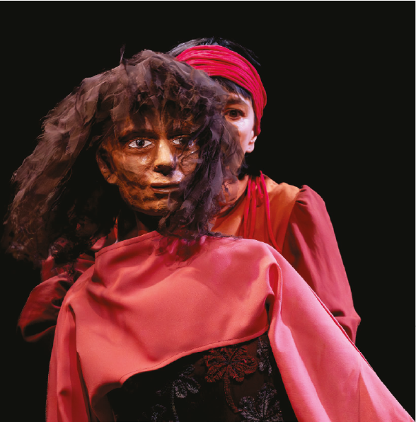 La comédienne, seule en scène, incarne Anta et manipule les marionnettes de tailles réelles ce qui leur permet d’exister au même niveau qu’elle. Avec aisance et fluidité, elle raconte l’histoire en passant d’un personnage à l’autre. Tout au long du spectacle, la comédienne fait de chaque marionnette un miroir de Anta, ce qui lui permettra de se révéler à elle-même pour mieux se dépasser. Elle entre dans un récit polyphonique, où plusieurs voix, la sienne et celles des marionnettes, s’entrelacent pour créer un dialogue intérieur. Le choix de jouer avec des marionnettes favorise l’abord des thèmes difficiles et violents de façon moins directe, permettant aux spectateurs de garder une certaine distance émotionnelle.